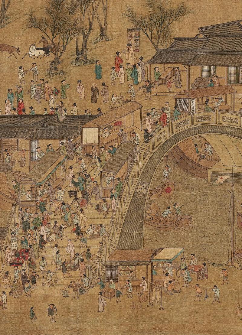 中华艺术宫使用多媒体技术在山形巨制屏幕上全景动态演绎《清明上河图》。作品的总长有128米,高6.5米,将原作放大了将近30倍。分为白天与夜晚,每隔4分钟为一个日夜循环。在研究北宋城市经济的基础上,增设了夜景篇章。整件作品结合声光电全效,使用12台电影级大型投影设备,设立8个智慧点。观众可身临其境,仿佛正置于一场古今交融的超时空对话之中。