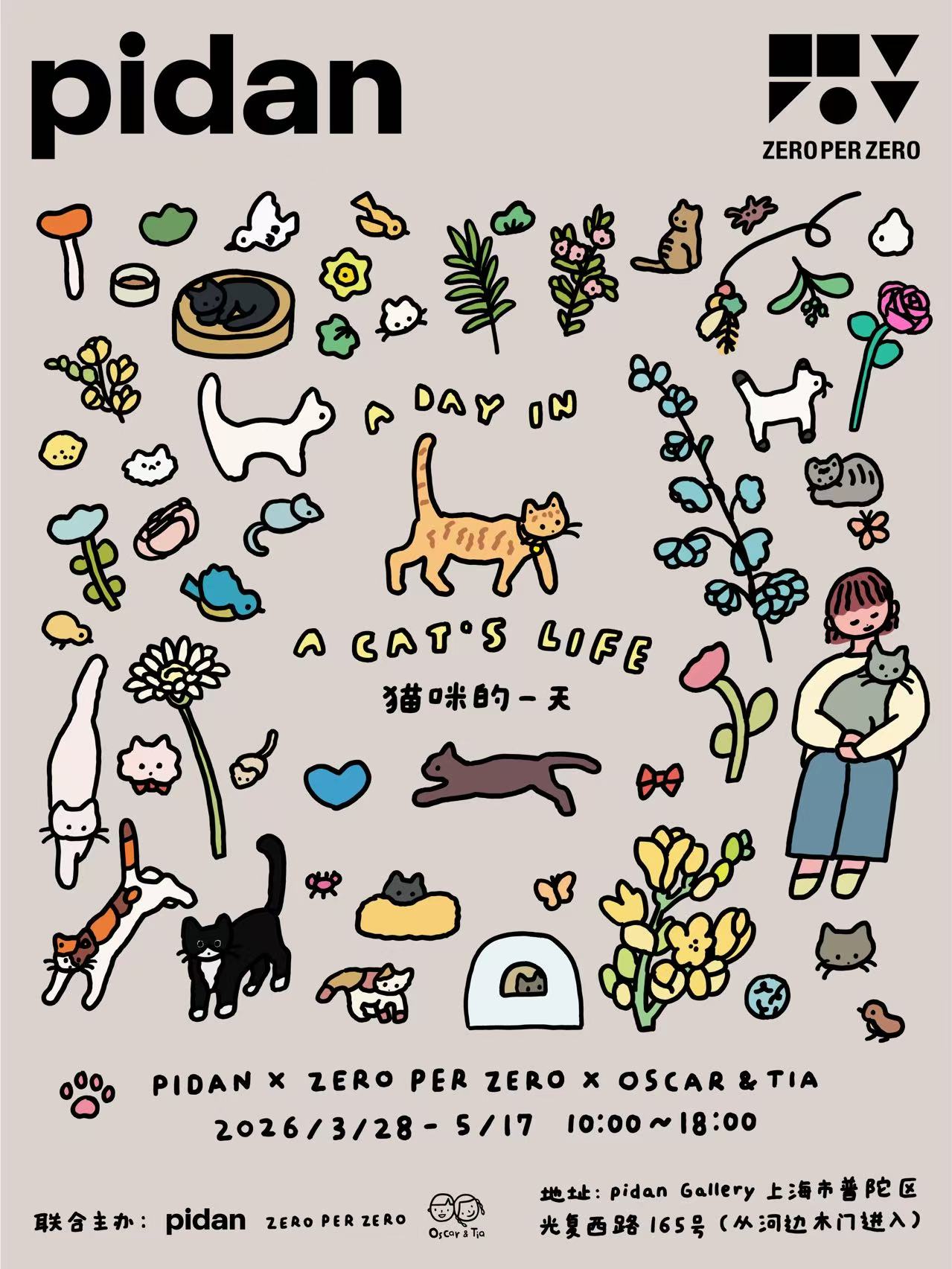 介绍 pidan Gallery将举办世界知名艺术工作室ZERO PER ZERO全球首展「猫咪的一天」。展览由「猫为先」的pidan联合ZERO PER ZERO及生活方式品牌Oscar&Tia主办,以简约而松弛的绘画风格和沉浸式置景,呈现家猫和流浪猫各自的日常瞬间。这是ZERO PER ZERO的猫咪绘画首次得到集中呈现,还有艺术家特别为本次展览新创作的「猫咪在上海」等系列作品。展览免费且猫咪友好,欢迎携猫看展!