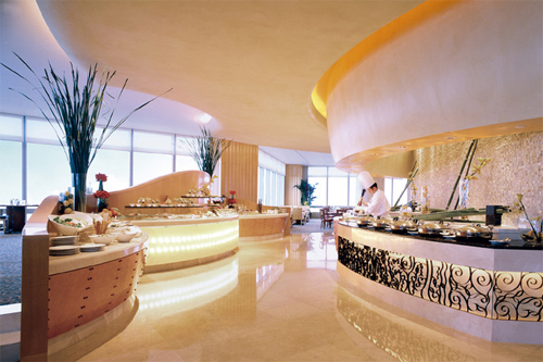透过180度的环形落地玻璃窗鸟瞰城市街景的万豪咖啡厅,位于南京西路上五星级的万豪酒店38层。坐邻靠窗的位子,不管是白天的车水马龙,还是夜晚璀璨的霓虹灯色,窗外的迤逦风景通通收入眼底。万豪咖啡厅提供单点和自助餐两种就餐形式,享受西餐的同时也有纯正的印度菜供您选择,贴心的主厨会根据每月不同的菜肴搭配不同的酒水。不管是用泰国巴非拉柠檬叶焗烤的特级深海虎虾;还是摈弃黄咖喱,以绿咖喱烹煮飘着浓郁椰香的咖喱鸡;或是澳洲以纯天然牧草饲养,直接空运至餐厅的牛排,进口的新鲜食材和有机蔬菜,让您边品美酒边享佳肴。