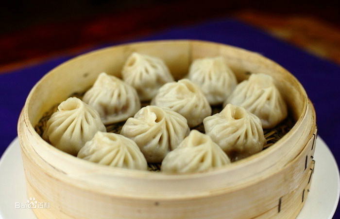 上海南翔小笼包已有100多年的历史。南翔小笼包的馅心是用夹心腿肉做成肉酱,不加葱、蒜,仅撒少许姜末和肉皮冻、盐、酱油、糖和水调制而成。小笼包的皮是用不发酵的精面粉做成的。蒸熟后的小笼包,小巧玲珑,形似宝塔,呈半透明状,晶莹透黄,一咬一包汤,满口生津,滋味鲜美。如果吃时佐以姜丝、香醋,配上一碗蛋丝汤,其味更佳。南翔小笼包素以皮薄、馅多、卤重、味鲜而闻名。
