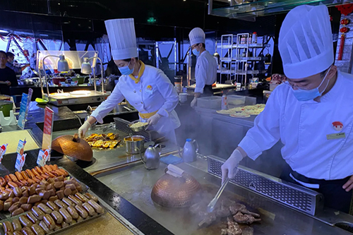 东方明珠·空中旋转餐厅位于东方明珠第二个球的上半部分267米高处,是亚洲最大的空中旋转餐厅,提供包括中国菜肴、东南亚美食、日本料理和欧美风味四大特点的自助餐。营业面积为1500平方米,包含360个餐位。宽敞明亮的球体玻璃窗外浦江美景一览无余,每2小时旋转一圈的设计,让您全方位360度将申城美景尽收眼底,体现了空中旋转餐厅的宗旨。