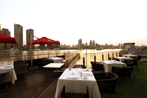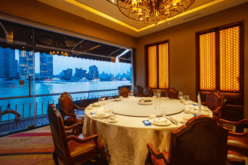 180°到270°的全江景包房,以郑和下西洋的航线命名,从“航海厅”出发至“南洋厅”途经“北欧厅”、“远东厅”,皆以当地风情为主题。辗转回到国内,“和韵厅”、“和鸣厅”及二楼“大同厅”充满中国元素,表达“四海一家、天下大同”的主题。二楼的“大同厅”包含主厅“龙凤厅”、会谈厅“明月厅”、秘书用餐地“中天厅”。餐厅大厨来自中国创意菜之首的“北京大董”,食材搭配独具匠心,摆盘尤为精美。如“鲜花椒呛加蚌”使用了时尚的分子料理技术处理,造型奇特。“海珍珠捞饭”则精选美国深海海域的藻类植物制成,非常珍贵,在上海甚为少见。三楼的露天酒吧则是城中时尚派对新宠。