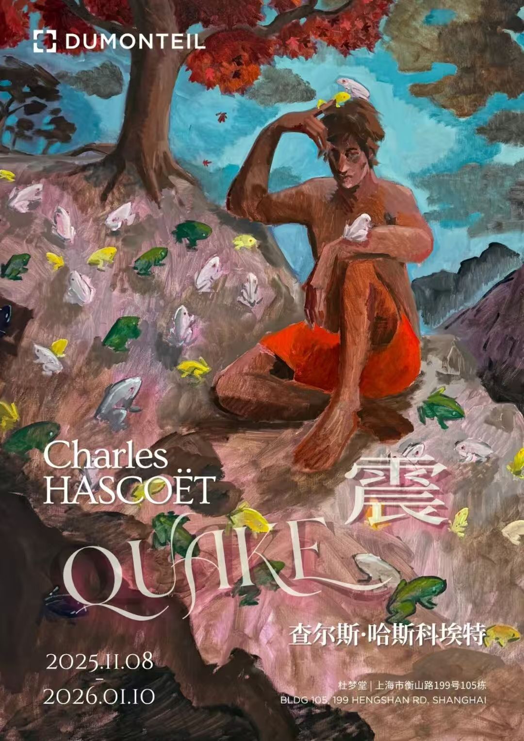 杜梦堂荣幸呈现法国艺术家查尔斯·哈斯科埃特(Charles Hascoët)个展《震》。这是艺术家在画廊的第三次个展,以一系列最新画作交织怀旧与奇幻的叙事,汲取艺术史典故、经典电影及个人记忆。《震》探讨了艺术家内心世界与我们当下现实中的不稳定性,勾勒出一组真挚、忧郁却又温暖动人的肖像,邀请观众一同踏上自我探索与集体记忆的旅程。