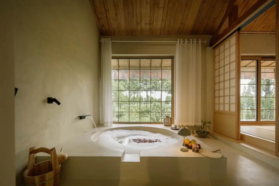 云溪上东庄民宿坐落于著名的“红色村庄”——东庄村。每栋楼都有其独特之处,为顾客提供多样化的选择。客房其中一间是日式风格的房间,房间里面配备着两个卫浴间,而休息区则采用榻榻米的设计,营造出舒适宜人的氛围。另外一间房间则是现代loft风格,并配有一个茶室和超大的庭院。这个空间结合了现代的设计理念,为您提供了一个充满活力和开放感的居住环境。