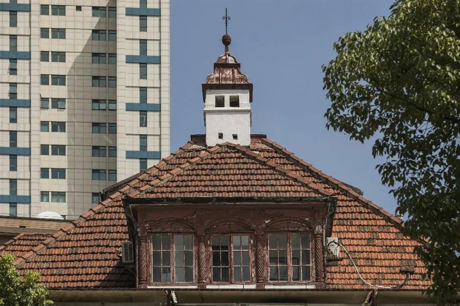 淮海中路1131号建筑外部与倍高洋行的其他作品有诸多相似之处,除了红瓦陡坡、巴洛克山墙和青铜冠顶,还有希腊式凸窗和精美的墙面木骨架。立面形体丰富、元素众多,展示出精巧的设计和独特的建筑风格。