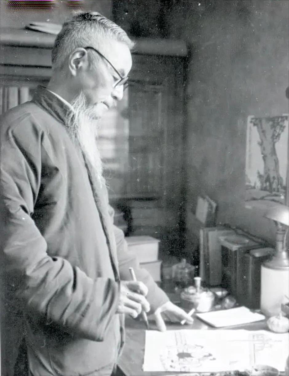 丰子恺在“日月楼”中作画