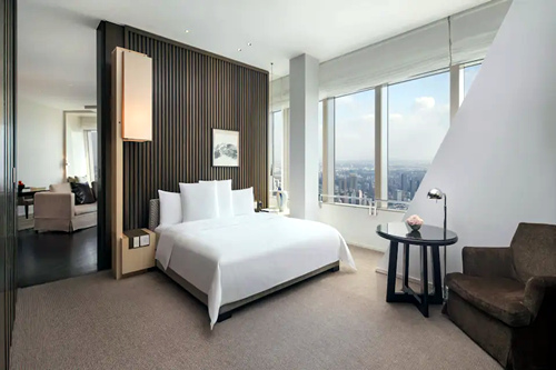 概述 上海柏悦酒店位于有“垂直型综合城区”之称的上海环球金融中心79至93楼,是一座精致的摩登中国式住宅酒店。开阔的空间及挑高的顶棚令客人感受到高雅气氛。酒店拥有多家餐厅和酒吧,用餐环境优雅且具私密性,可在尽享美食的同时欣赏上海的迷人城市景观;更能令宾客沉醉于三十年代的复古情怀之中,享受夜晚的闲暇时光。