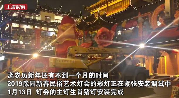 离农历新年还有不到一个月的时间,2019豫园新春民俗艺术灯会的彩灯已在陆续安装。
