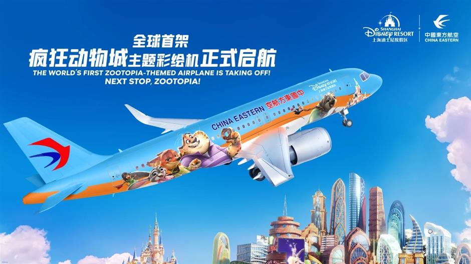 继全球首个疯狂动物城主题园区在上海迪士尼乐园盛大启“城”,上海迪士尼度假区和中国东方航空今天共同揭晓了全新“疯狂动物城”主题彩绘飞机——“迪士尼•疯狂动物城号”。这是度假区与其企业联盟合作伙伴中国东方航空携手推出的第六架迪士尼主题飞机。即将首航的“迪士尼•疯狂动物城号”将把“疯狂动物城”的种种精彩带给度假区之外的更多游客,邀请他们开启一段前往这个哺乳动物大都会的神奇旅程。