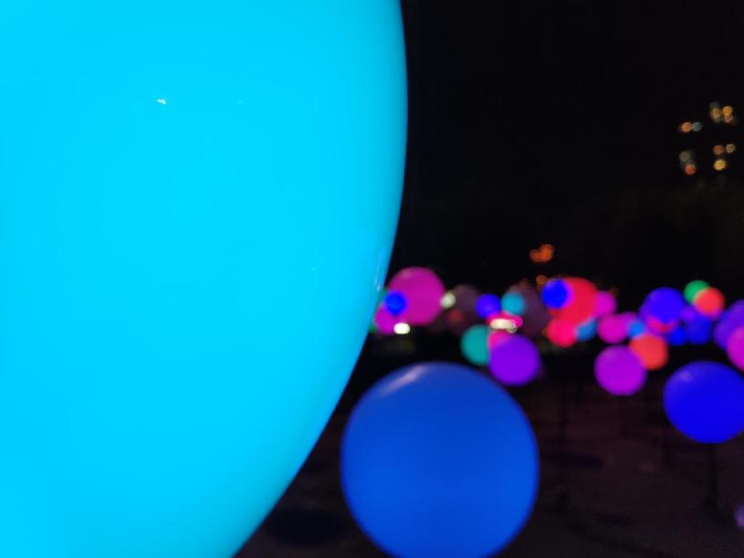 舞狸灯火嘉年华的盘龙和财神灯组也不一般。财神灯选用蓝色为主色调,再配以后方的假山投影,效果清新大气。盘龙的龙身则选用了珊瑚橙,配以黄色和蓝色,显得精气神十足。此外,旋转木马旁还放置了“中华美食”灯组,栩栩如生的小笼包、面条、虾以及会动的鱼,让入园游客处处都能发现惊喜。