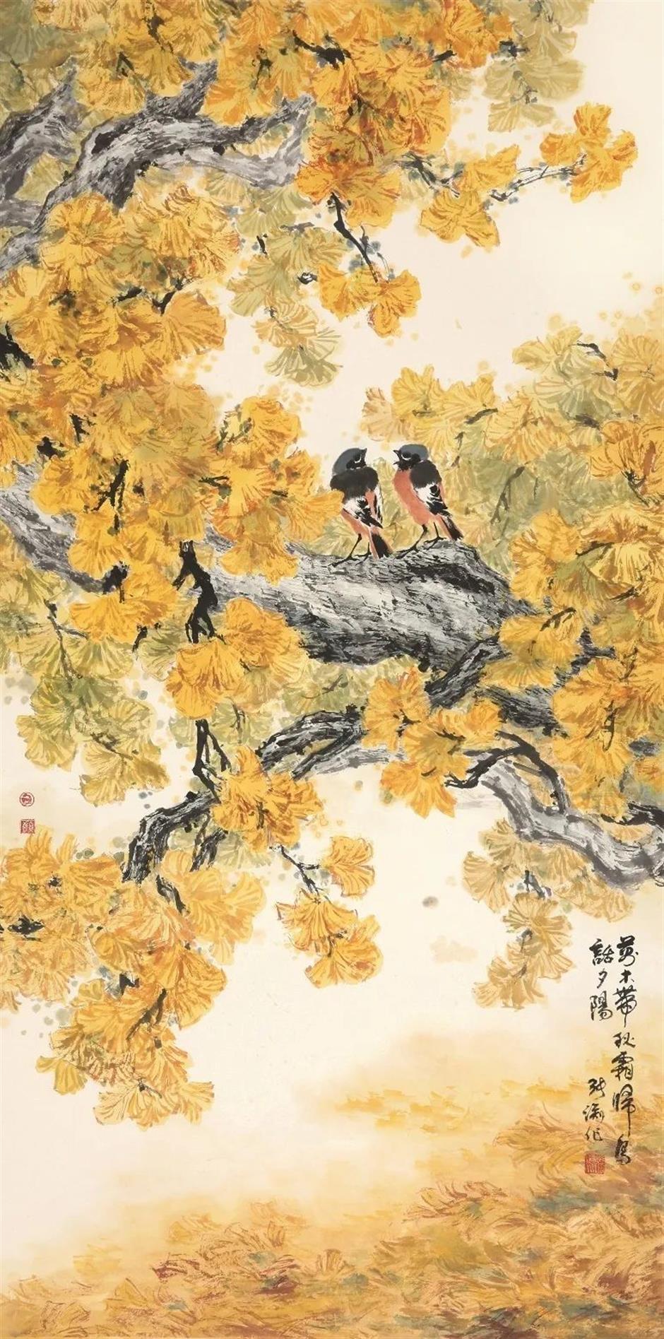 《归鸟话夕阳》,这是张渊在2013年以莘庄两棵古银杏为灵感创作,而这两棵仍挺立在莘建路上的古银杏,曾是张渊父亲张守成弟兄们幼年生活成长的地方,寄托着她对家乡的一片深情。