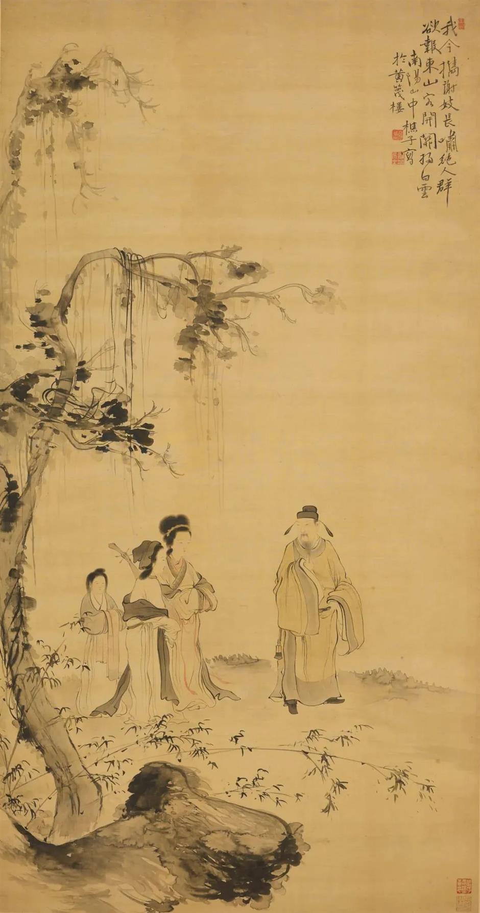 【 清 华喦 东山携妓图轴 】