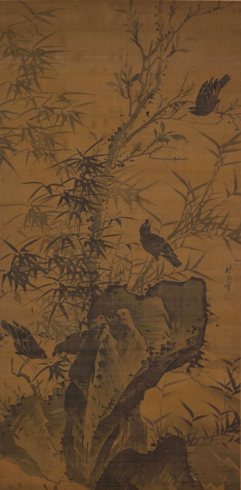 【 明 林良 竹禽图轴 】