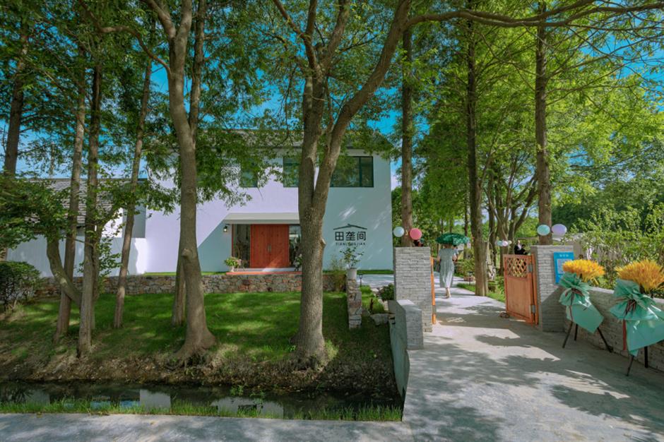村里的“恋塘三赏”民宿,幽静的中式庭院让人眼前一亮。民宿由农民自建房通过整体规划设计翻新重建而成,秀美田园与新、老建筑元素混搭,将院落、树林、农宅有机结合。