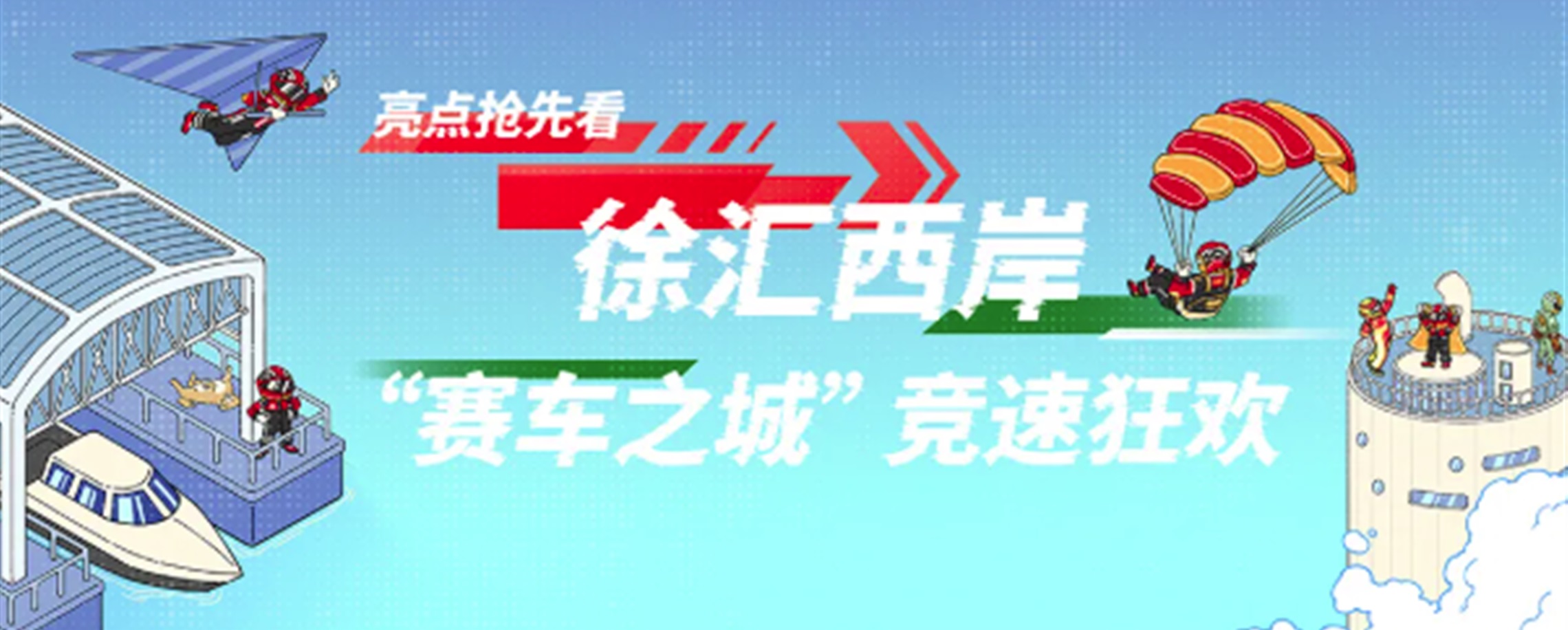 3月8日,徐汇西岸与宝山滨江两大会场率先开放。其中,徐汇西岸作为启动仪式举办地与核心首发会场之一,化身“赛车之城”,全方位打造沉浸式赛车文化体验场。现场融合了赛事转播、主题展览、舞台演出、互动游戏、主题车展及商业展陈等多元业态。