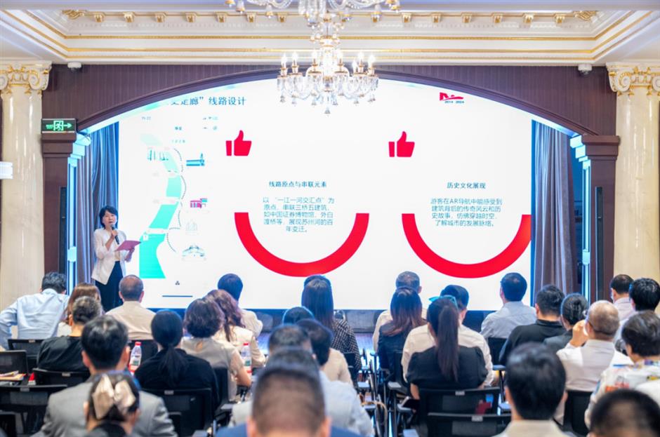 “何以春申”推介环节,主讲人虹口区文化和旅游局局长童科以生动的语言、详实的资料,讲述了虹口的历史文脉、人文故事,领略到这片土地从古老传说走向现代繁华的独特魅力。
