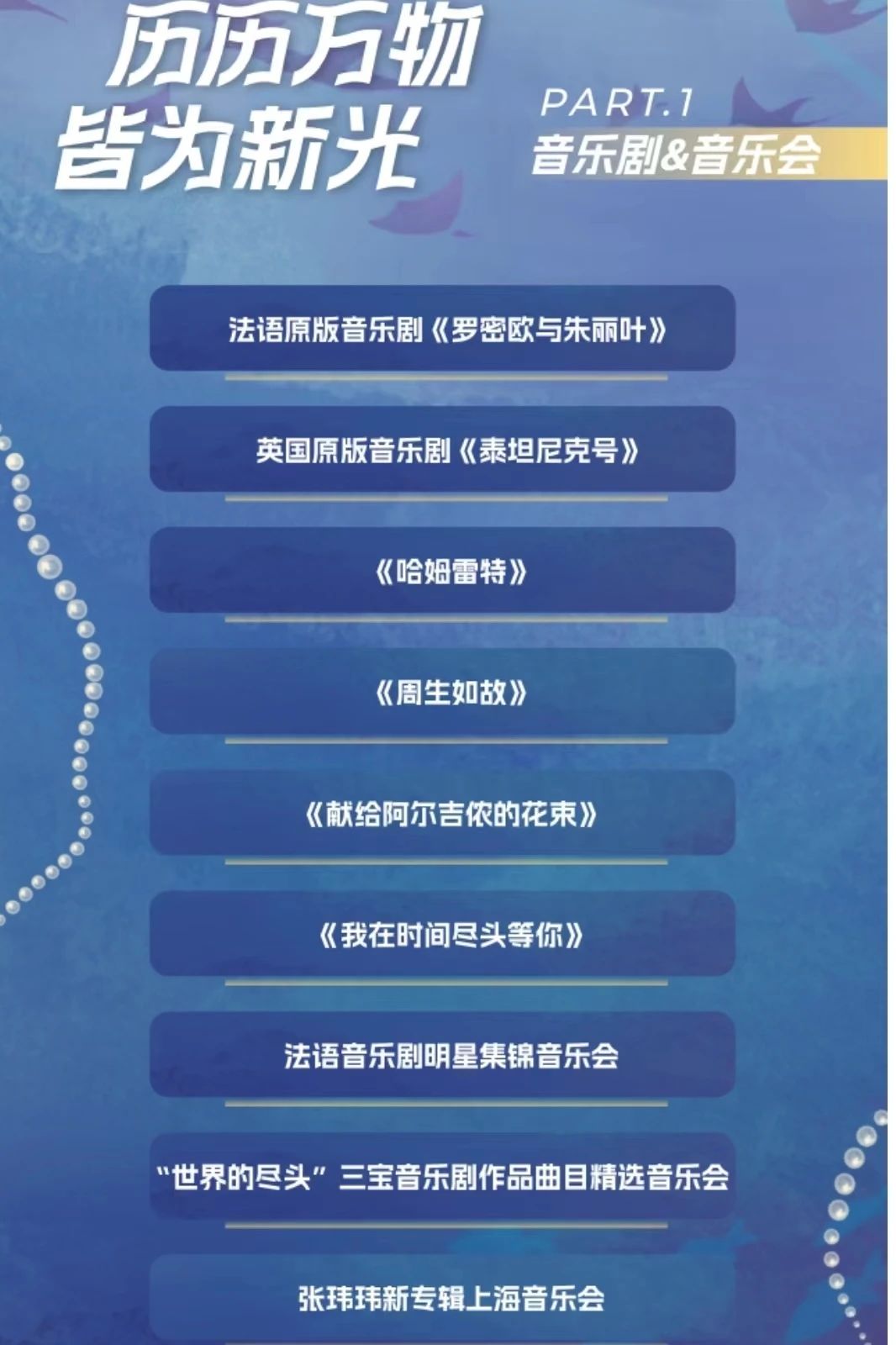 海外项目中,法语原版音乐剧《罗密欧与朱丽叶》有望成为首部回归的海外音乐剧大戏,之后英国原版音乐剧《泰坦尼克号》将再度来沪。