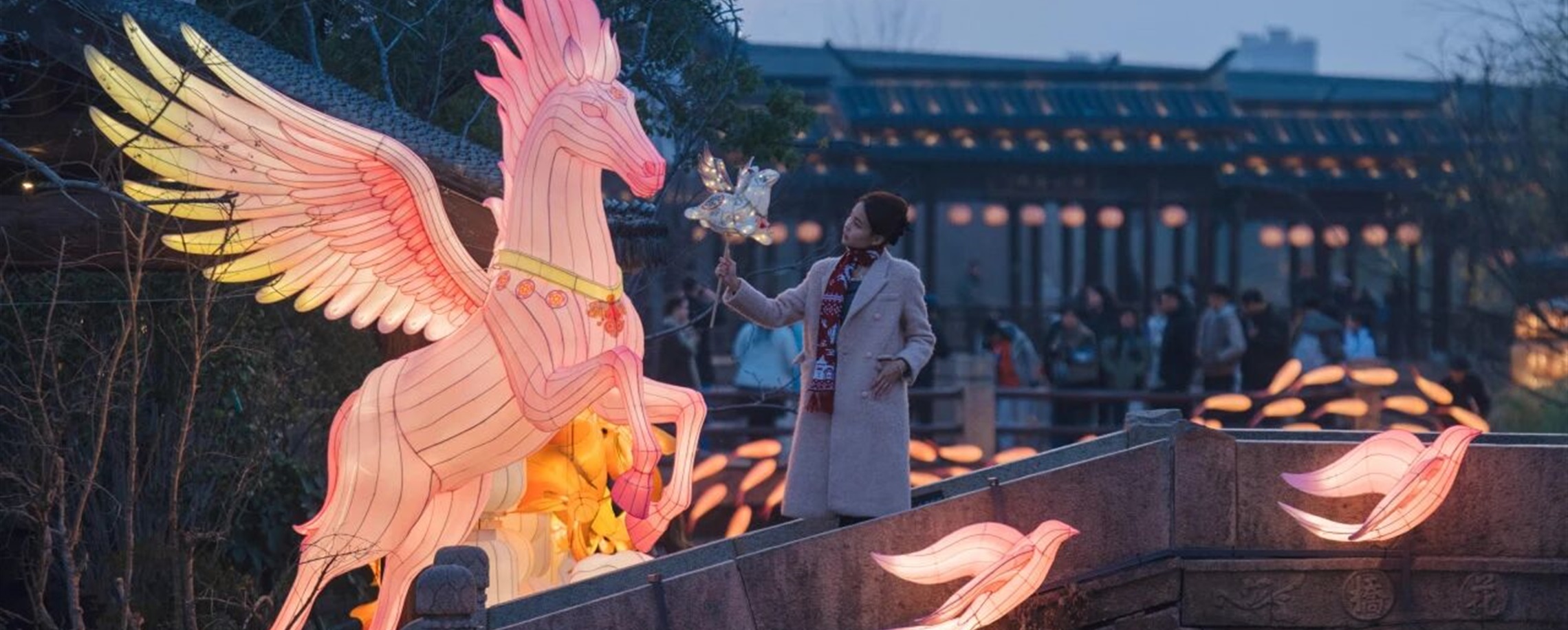 大宁国际商业广场的《走马嬉春》马年艺术装置,以游马繁花的步步生香、马到功成的一马当先、金福悦马的福水纳财等吉祥姿态呈现。
