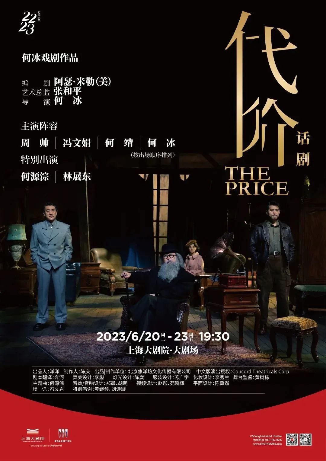 何冰戏剧作品、美国戏剧大师阿瑟·米勒的经典剧作《代价》是何冰时隔九年再次来到上海大剧院,更是他首次携自导自演的戏剧作品来到上海,这部经典话剧的原作数度将托尼奖、艾美奖等国际大奖收入囊中。
