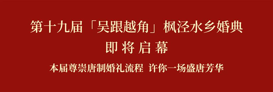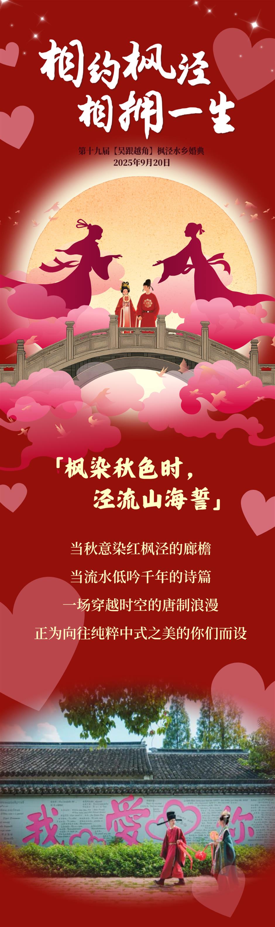 第十九届「吴跟越角」枫泾水乡婚典活动时间:2025年9月20日(周六上午)