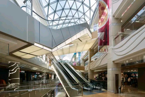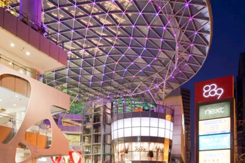 悦达889广场位于上海市静安区曹家渡地区,集办公、商业及休闲娱乐设施为一体。据说,路过悦达889的人,即便不进去购物,也一定会驻足观望片刻,看一看那个亚洲首创的“幻影云顶”。广场的全玻璃顶棚,独特个性、轻盈流畅的云顶式设计,将整个上海的风貌浓缩于云顶天空之下,给人以通透感和现代节奏感。室内蜿蜒的地台饰面与自由云顶和云水灯光立柱呼应。阳光映照下,整个建筑曼妙多姿,堪称“室内”苏州河。无论是外观还是内在,889给人的感觉都是非常时尚。(部分图片来源于大众点评网@889广场)