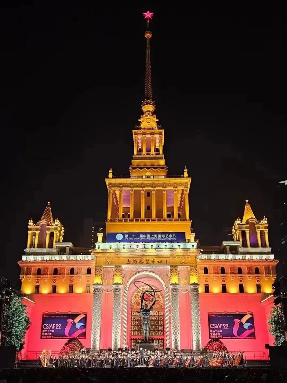 约3000位观众在现场欣赏了这场演出.这不仅是中国上海国际艺术节节日乐团全球首秀,也是拆除围栏的上海展览中心首次将户外喷水池广场作为演出空间对公众开放,建筑、音乐、灯光相得益彰.女高音歌唱家安吉拉·乔治乌唱起普契尼歌剧《蝴蝶夫人》的经典咏叹调"晴朗的一天",小提琴演奏家文格洛夫奏响门德尔松《e小调小提琴协奏曲》;他们还分别加演了《茉莉花》和小提琴协奏曲《梁祝》.