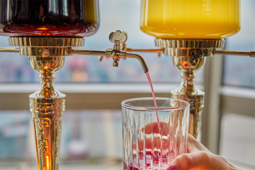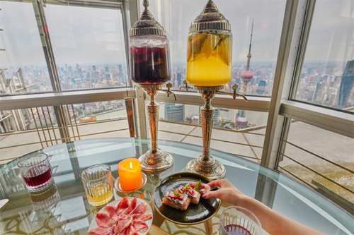 Located at the pinnacle of the Jin Mao tower at Grand Hyatt Shanghai, guests can relax with sky-high tapas selections and specially make cocktails and snacks. With a spectacular 360-degree view of Shanghai from the 87th floor, it also features a great collection of champagnes and sparkling wines by the glass, savory snacks, and DJ performances.