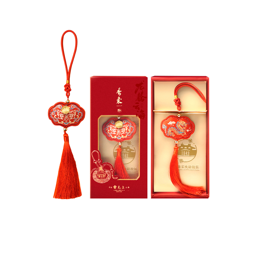 This product is jointly launched with the Soong Ching Ling Memorial Residence in Shanghai, drawing design inspiration from the sachet Madame Soong wore in her childhood, which carried warm memories. The sachet takes the shape of a longevity locket (Changming Suo), with one side meticulously recreating the original artifact’s loong pattern and “Shou” (longevity) character and the other featuring a traditional Chinese loong design, which symbolizes the auspicious blessings of prosperity, warmth, harmony, and the joyful wish for longevity.
