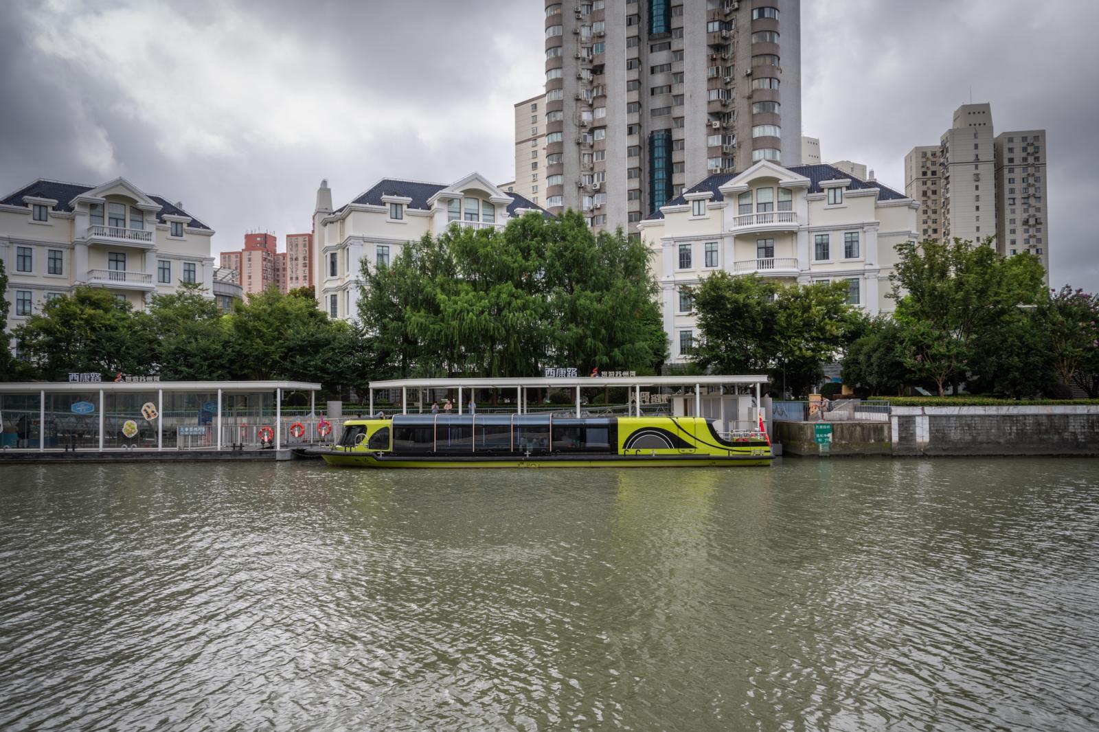 Xikang Road Pier, located on the south bank of the Suzhou Creek between Zhenping Road Bridge and Xikang Road Bridge, accommodates security screening, temperature checks, passenger waiting areas and terminal management. The design shapes a continuous, flowing form that conveys long‑standing stories and warm emotions. Beneath the smooth curves are soft outdoor furnishings and lush greenery, imbuing Xikang Road Pier with added vitality and life.