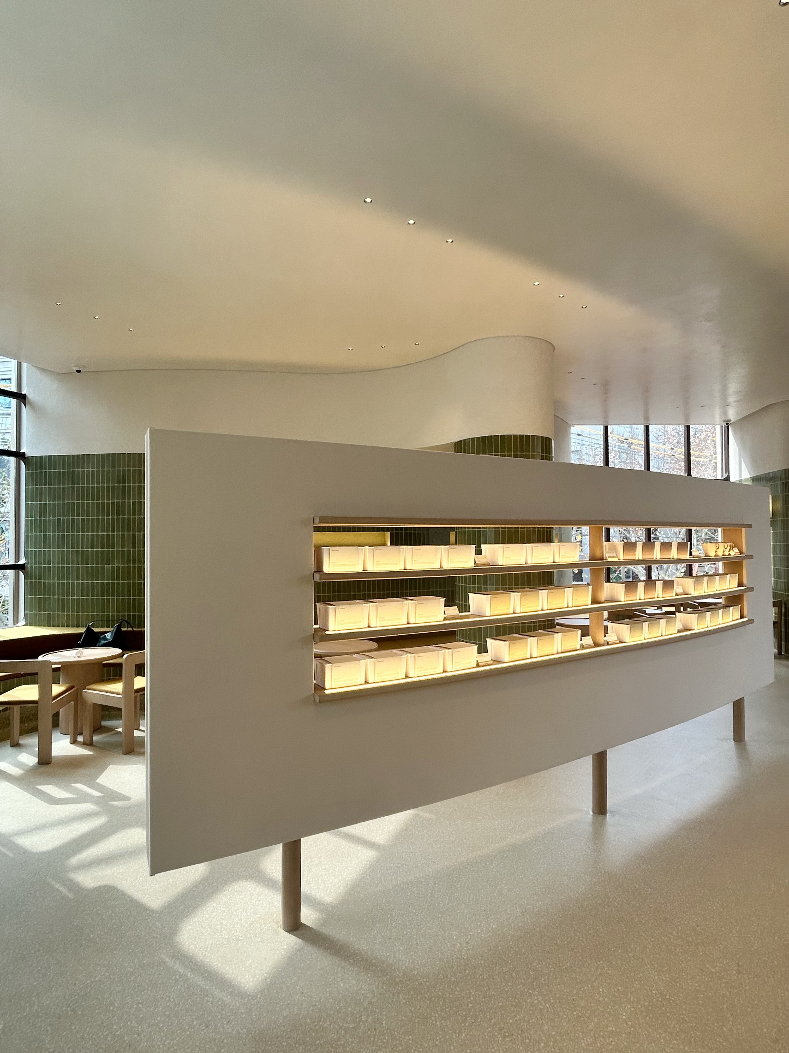 소매를 넘어 이 공간은 플로럴 티와 스페셜티 음료 바를 통합하여 아메리카노와 라떼 같은 클래식한 옵션을 제공합니다. 브랜드의 완전한 세계를 제시하고 더 깊고 몰입감 있는 경험을 제공하는 데 중점을 두고 있습니다.