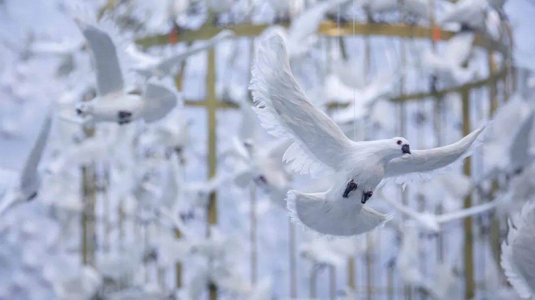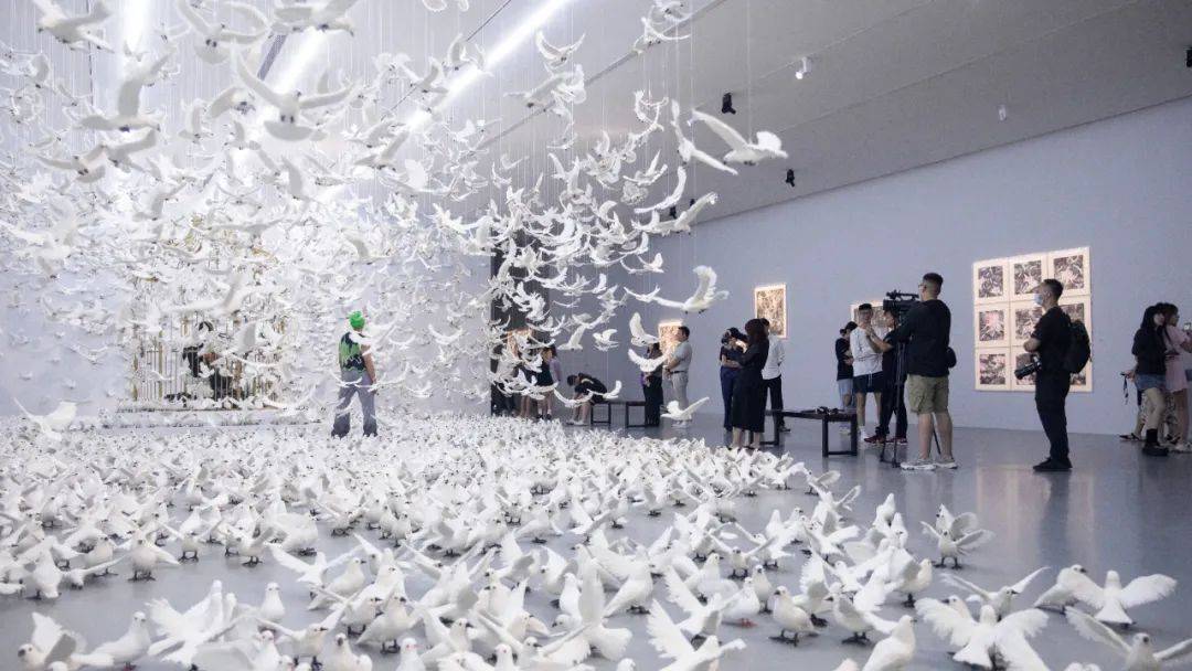 一萬隻潔白的鴿子飛進美術館,一顆顆鮮紅的櫻桃靜靜躺在一張床上,等待他的主人——當代藝術家、詩人、童話作家週藝文先生的闡釋。