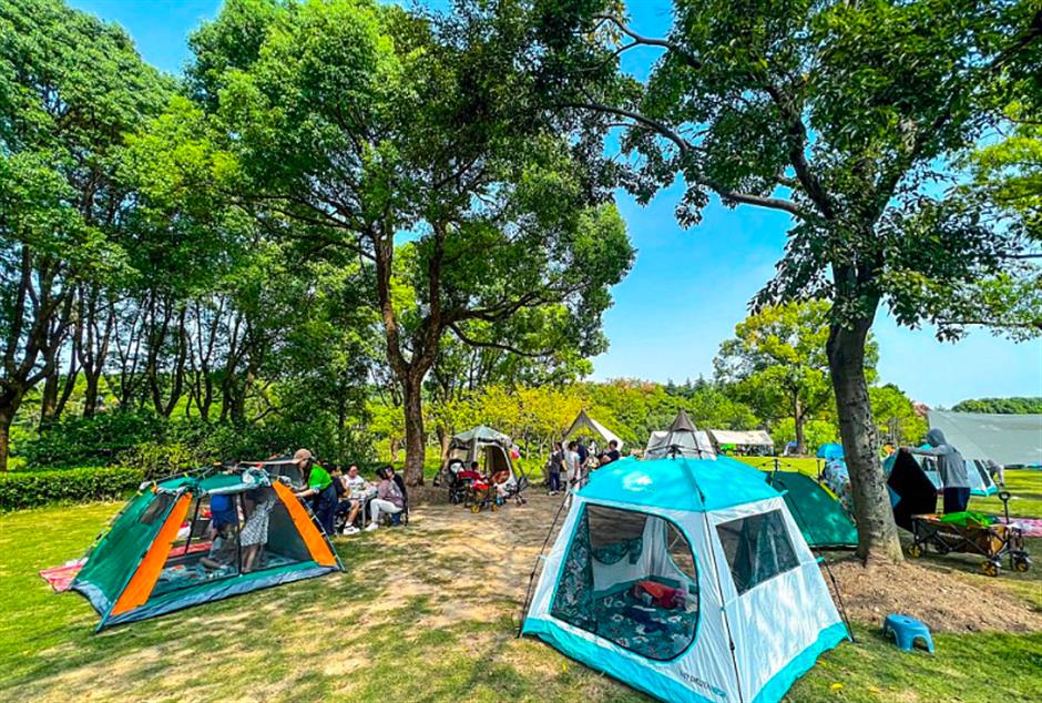 浦江郊野公園非常適合初次體驗露營的人,在公園裡,不少的草坪和林地對帳篷客開放,草坪上時不時傳來孩子們陣陣歡聲笑語。如今,越來越多家長帶著孩子來到室外,享受大自然的環境,搭帳篷露營也成為了一種潮流。每到節假日天氣晴好時,這些帳篷露營點就供不應求。