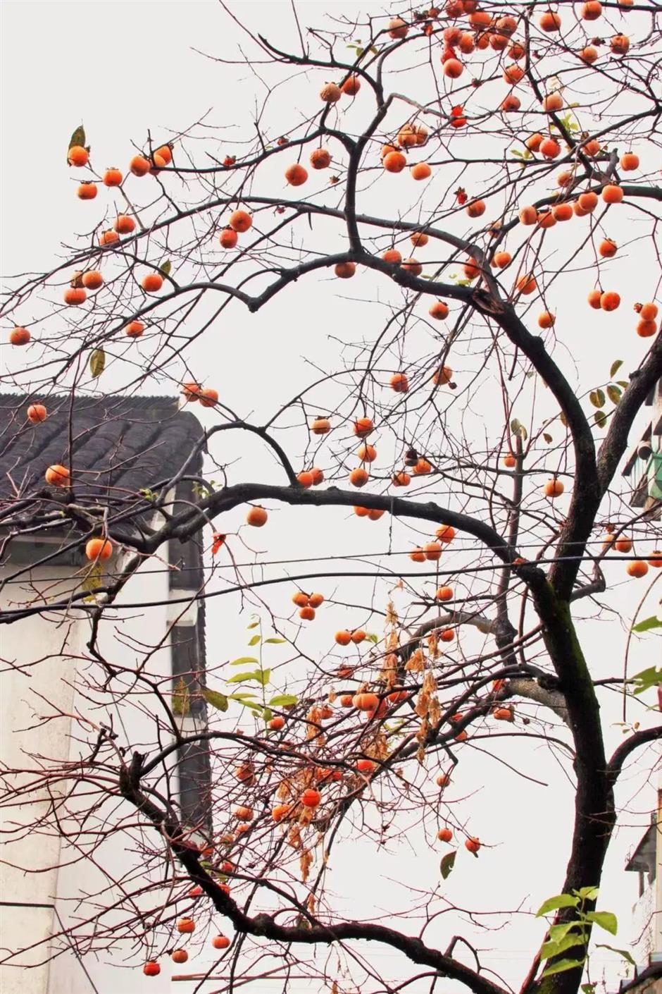 村裡枝繁葉茂的柿子樹,將夏天的“多巴胺”色彩轉化成秋天的“美拉德”色系,訴說著又一年的豐收喜悅.