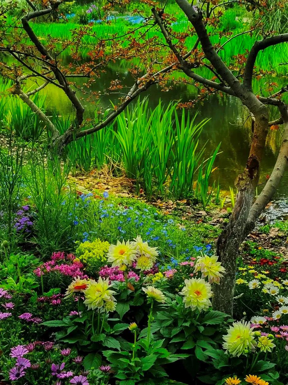 華明橋畔佈置繽紛花境,野趣自然,又如同莫奈花園般朦朧浪漫,令人陶醉。