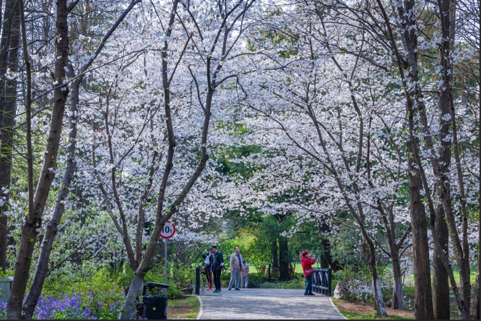 嬌豔欲滴的海棠、色彩豔麗的桃花、落英繽紛的櫻花如雲霞般夢幻多姿,呈現一派“翠林映花海,紅景繡春堤”的風光,讓遊客盡享百花齊放、美輪美奐的春景。