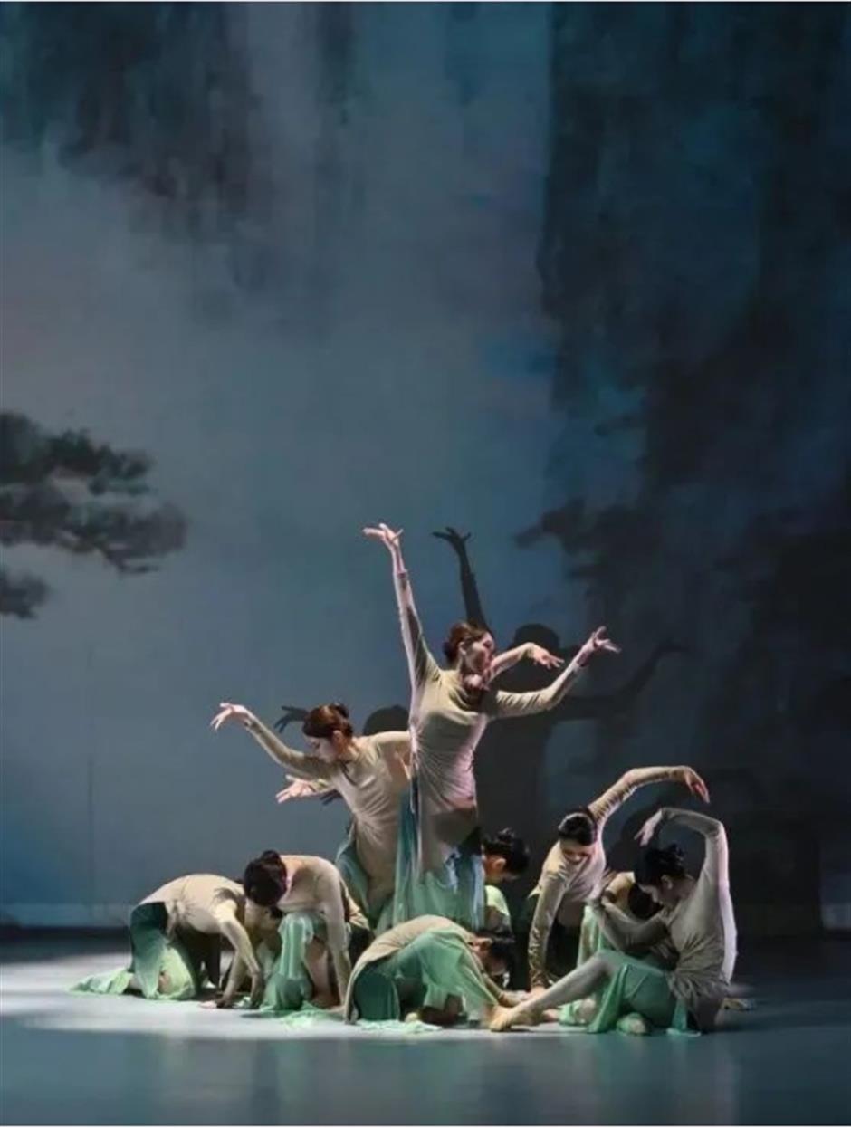 作品的上半場是《和-舞畫道》,以雲山、飛瀑、松柏、河流等的自然意象為舞姿,集合了「氣、動律、經脈、哲學、科技」等中國傳統元素。