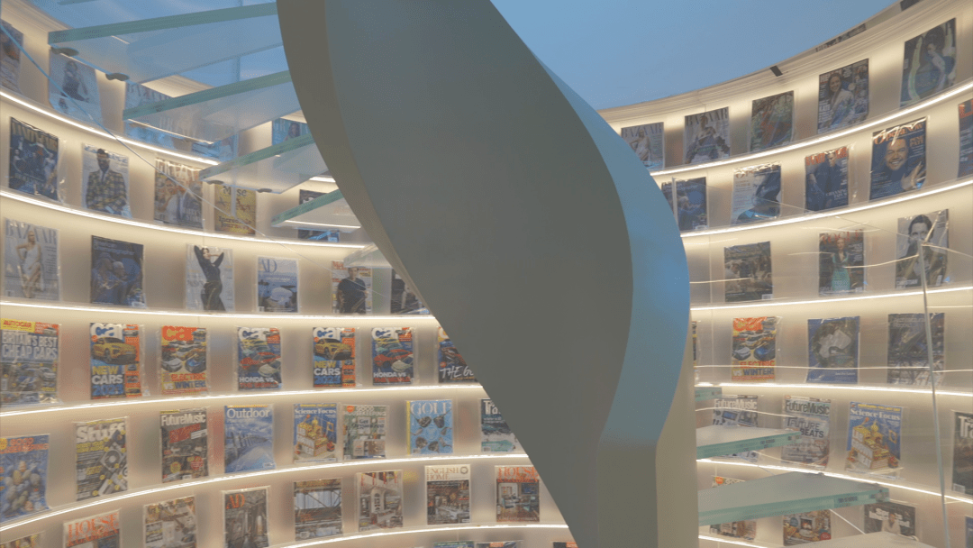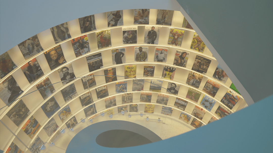 走進刊茶社,映入眼簾的是放滿了刊物的書架和用全球期刊裝點的牆。