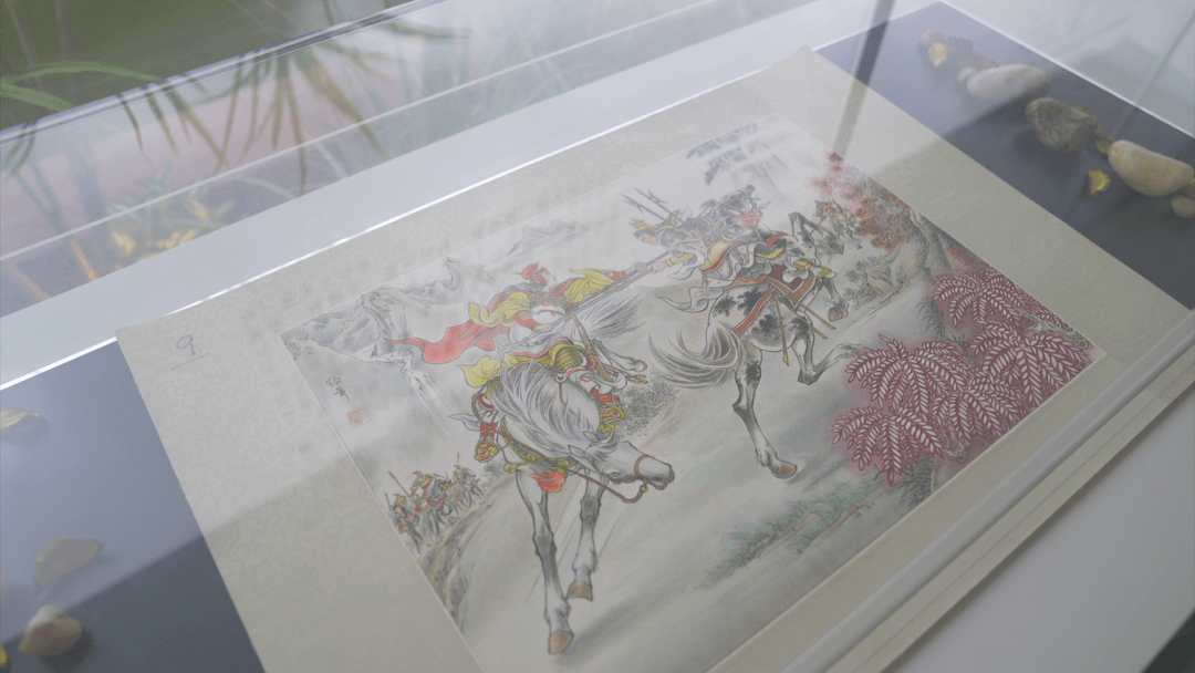 走上二樓,在玻璃窗前的櫃檯舉辦了盛鶴年《三國演義》連環畫展——虹口畫家的巔峰之作。